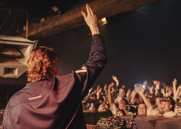 Thuishaven is een iconische evenementenlocatie in Amsterdam waar muziek, kunst en cultuur samenkomen. Tijdens een show van DJ Marsolo werd de energie en sfeer van de nacht vastgelegd vanuit een uniek perspectief achter de DJ.